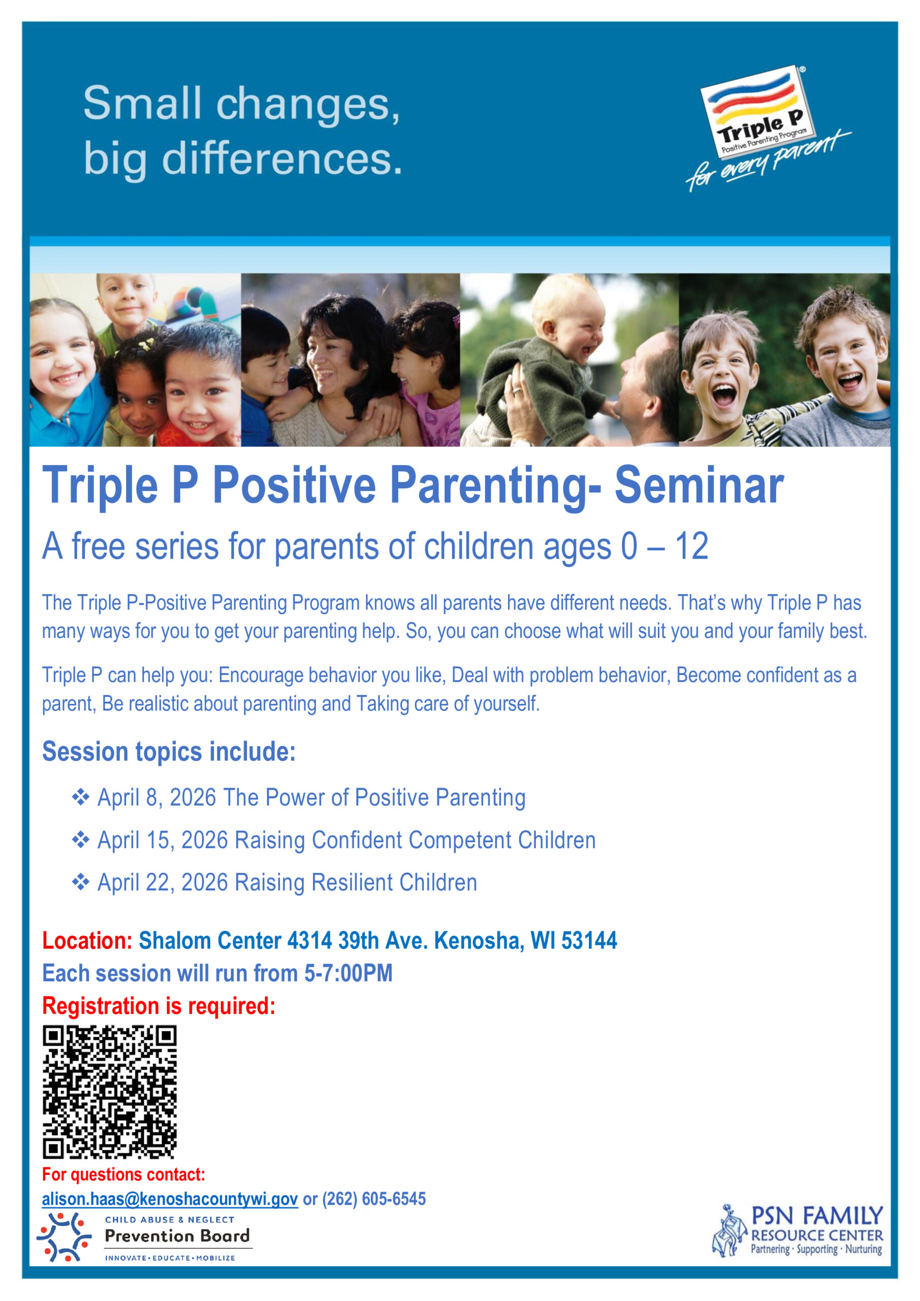 TRIPLE P POSITIVE PARENTING-SEMINAR WEDNESDAY APRIL 8,15,22, 2026
