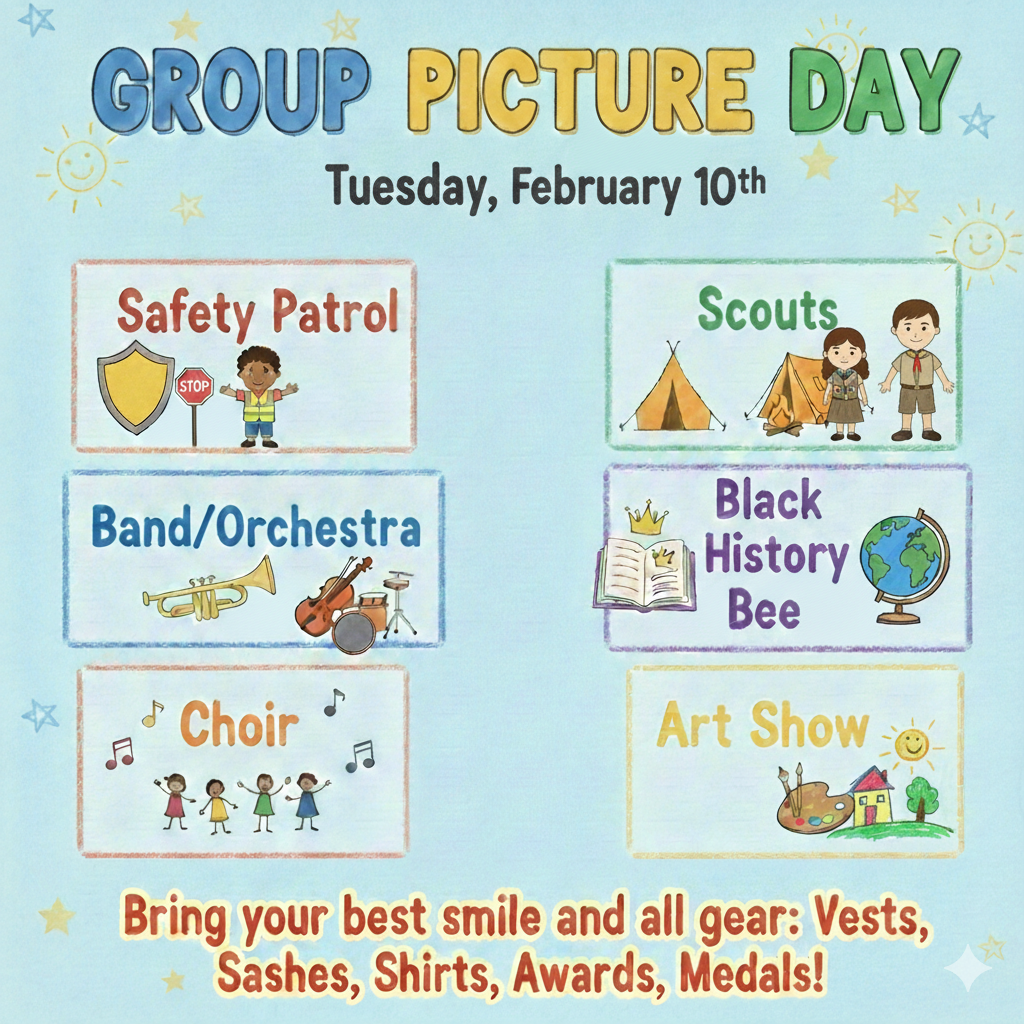 Group picture day is Tuesday, February 10th! Send your kids with their uniforms, sashes, awards, any other accessories that they need and their biggest smiles! 📸😃
