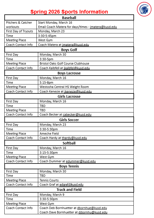 Check out all the information for start dates and coaches information for our Spring sports athletes.